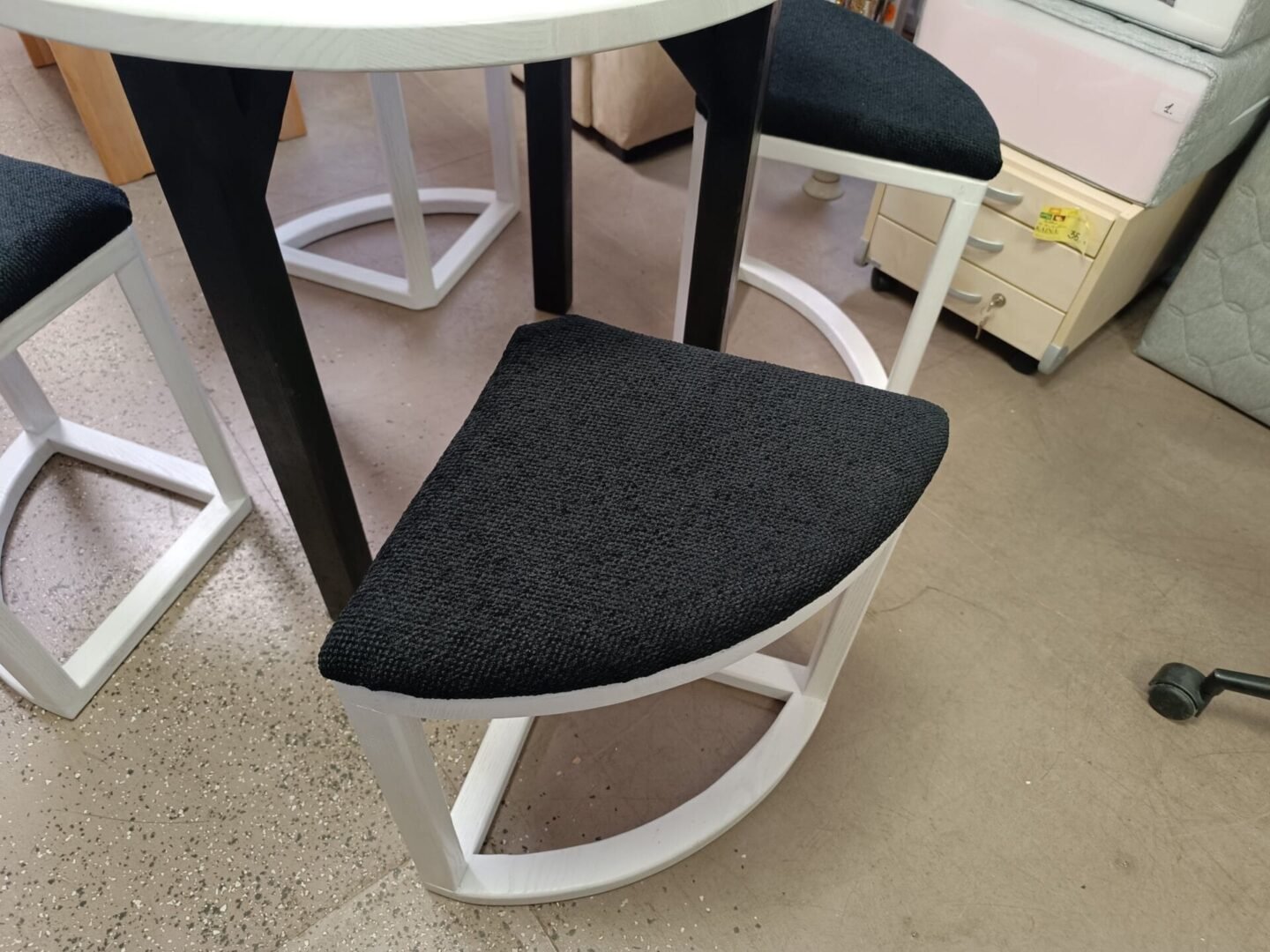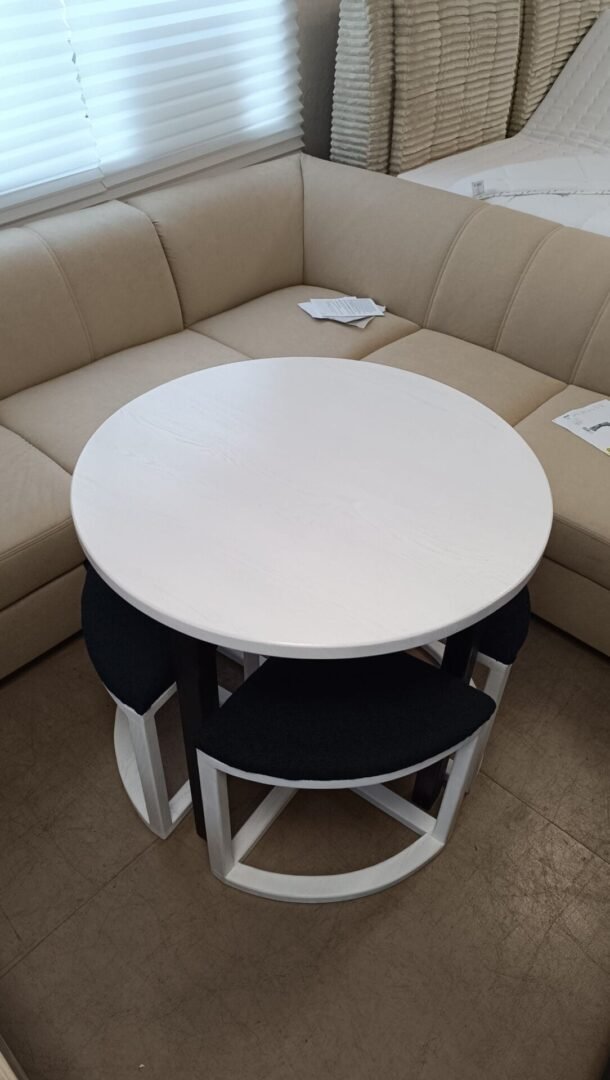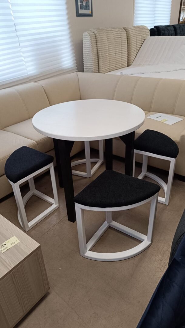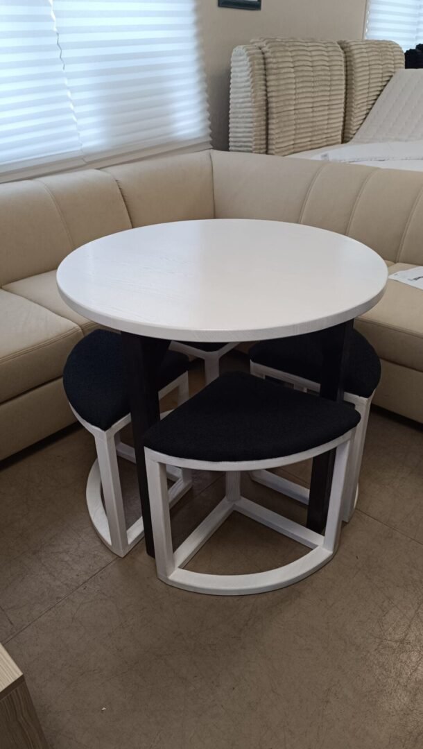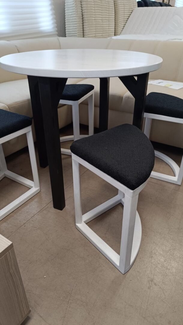Rankų darbo valgomojo komplektas – apvalus stalas (80 x 80 x 75 cm) ir keturios kėdutės – pagamintas iš aukštos kokybės lietuviško uosio medienos. Tai elegantiškas, ilgaamžis ir kompaktiškas baldų rinkinys, kuris puikiai tinka tiek moderniam, tiek klasikiniam interjerui. Uosio mediena išsiskiria tvirtumu, natūralia tekstūra ir šiltu atspalviu, suteikiančiu jaukumo jūsų namams. Apvali stalo forma užtikrina patogų bendravimą ir lengvai įsilieja į bet kokią erdvę.