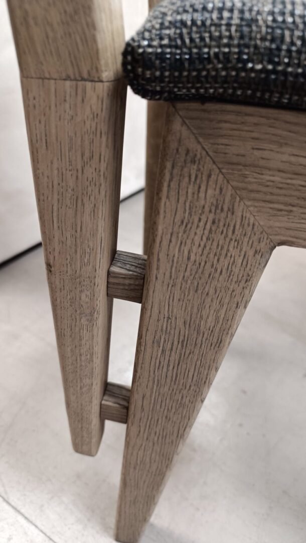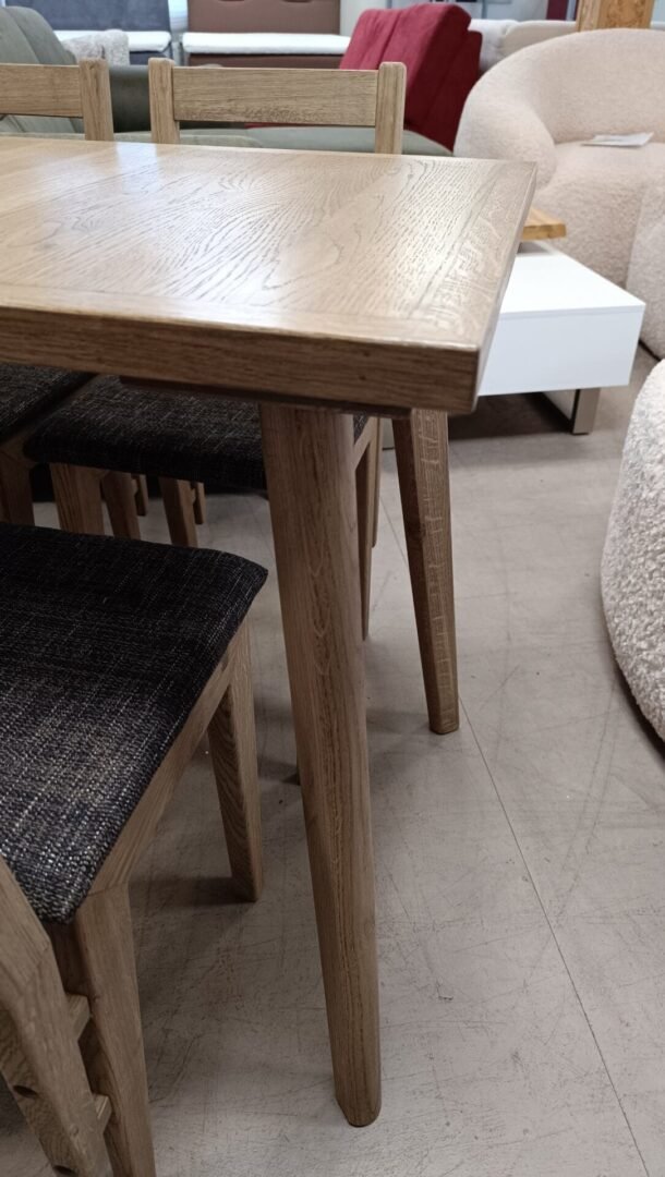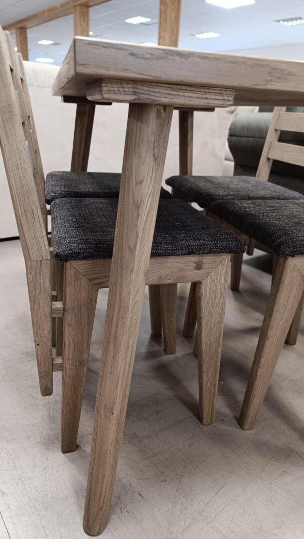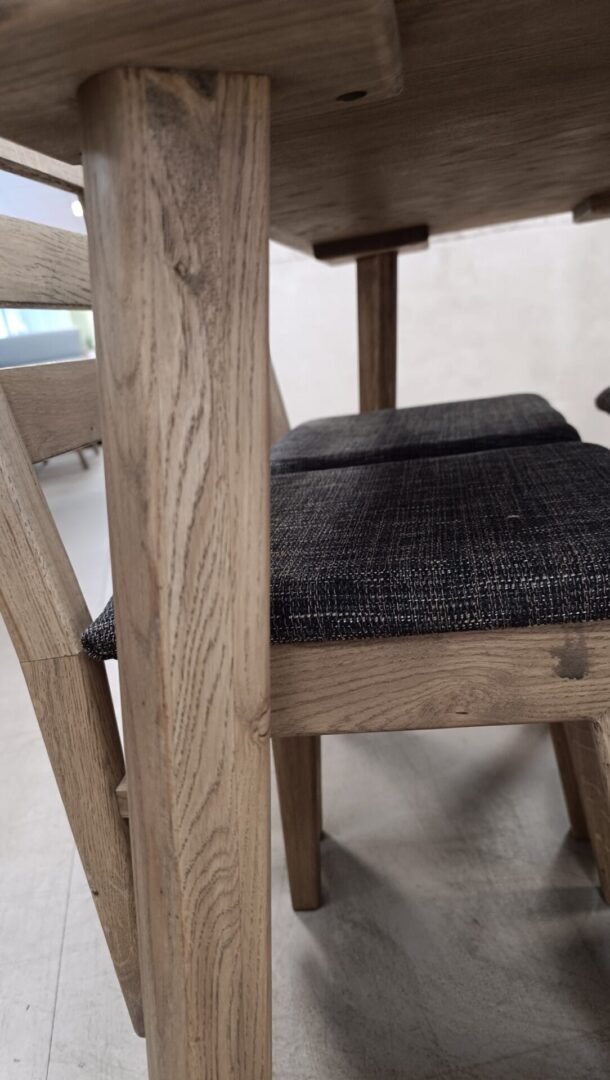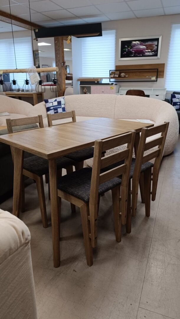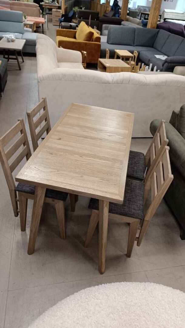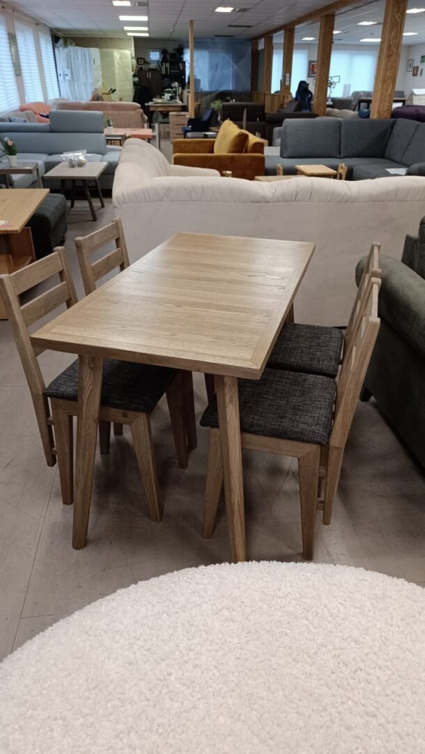 Rankų darbo, Lietuvoje pagamintas valgomojo komplektas iš ąžuolo: stalas ir 4 kėdės. Kompaktiškas, stilingas ir ilgaamžis baldas jūsų namams.