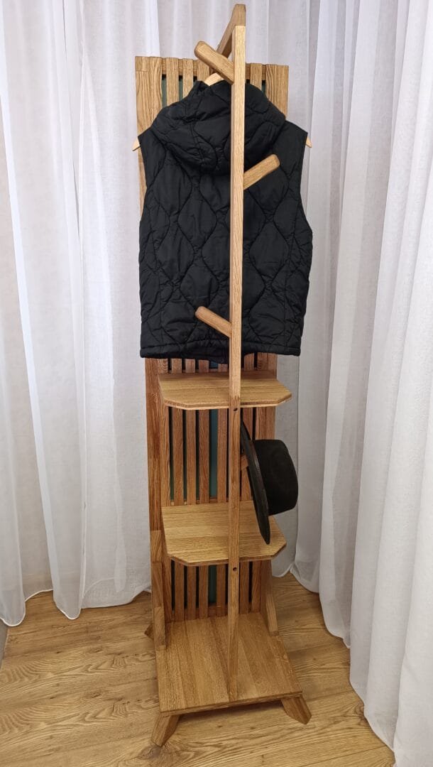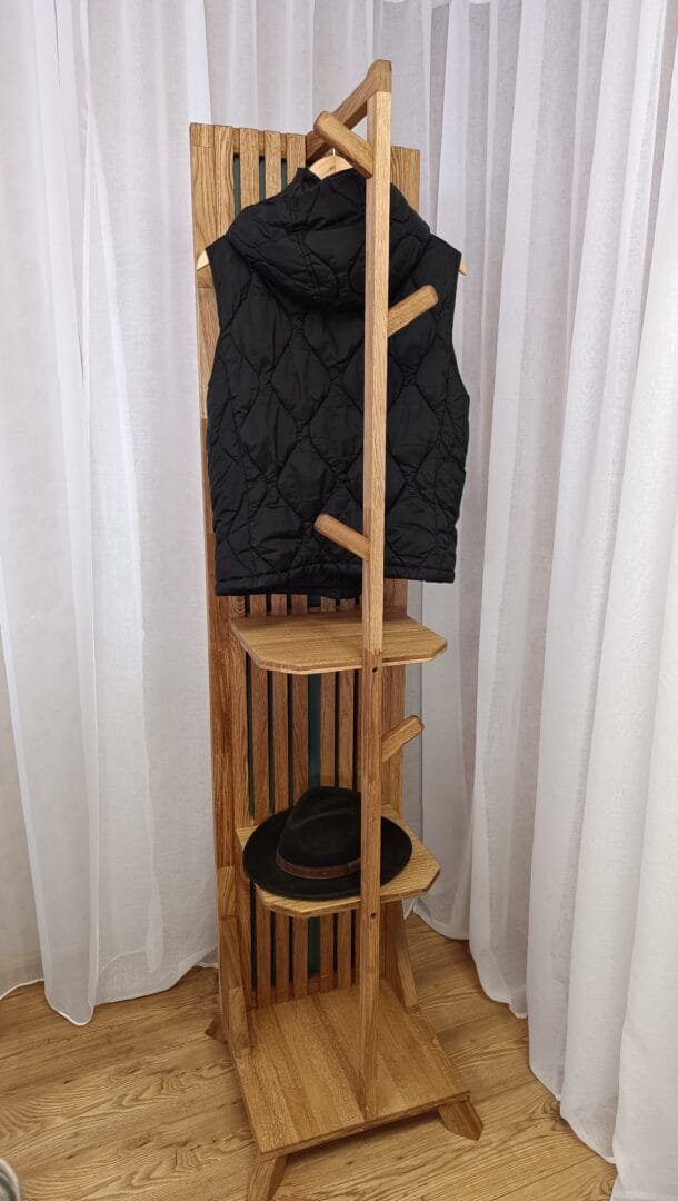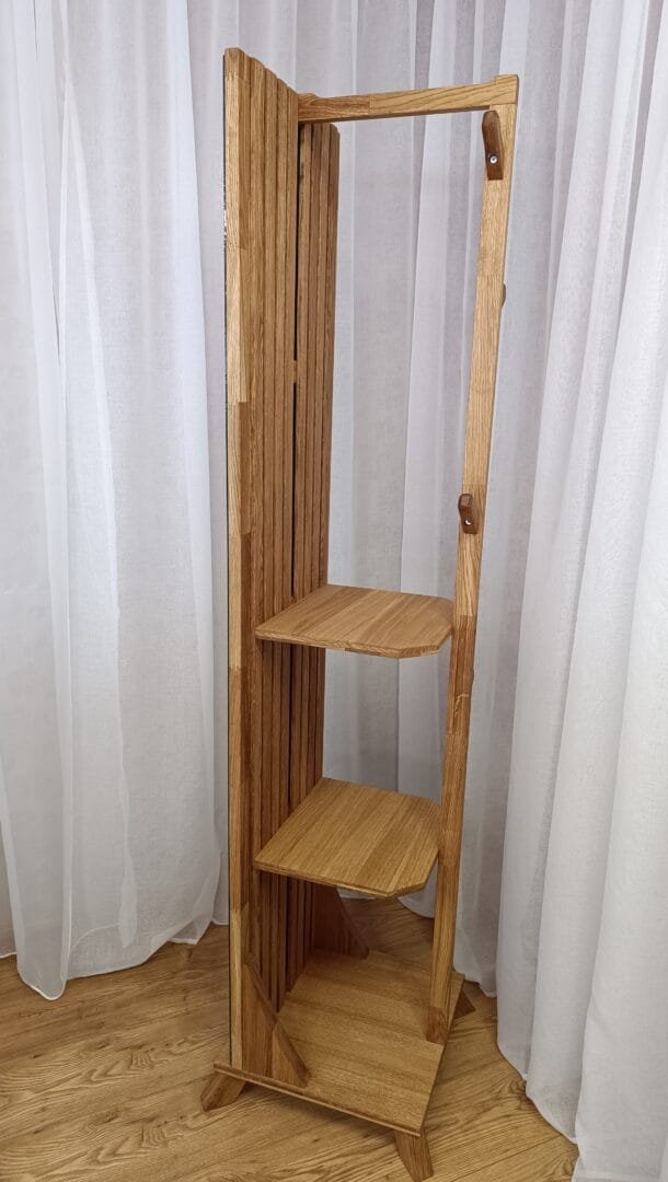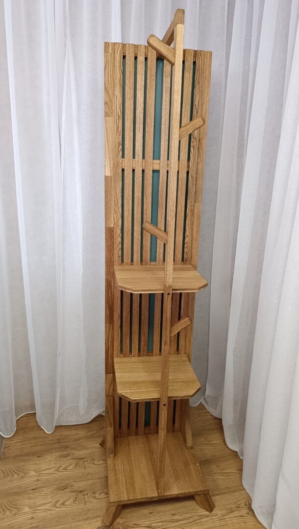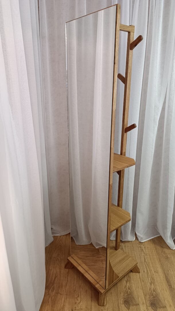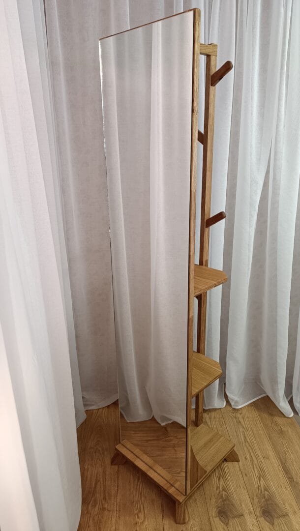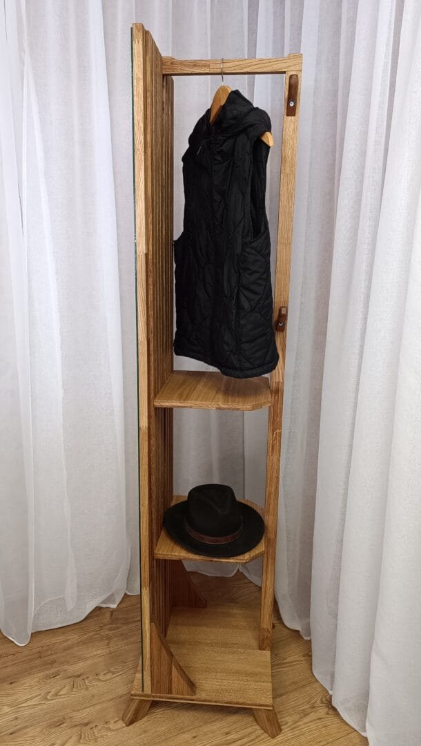 Šį veidrodį ir kabyklą viename pagamino patyrę meistrai, kruopščiai apdorojantys kiekvieną medienos detalę. Jūsų namuose stovės ne serijinė masinės gamybos prekė, o autentiškas, rankų darbo baldas.