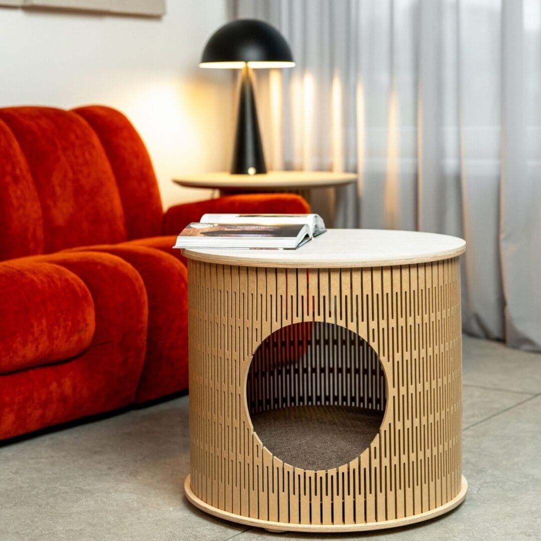 ✅ 2-in-1 funkcionalumas – modernus staliukas ir jaukus guolis viename