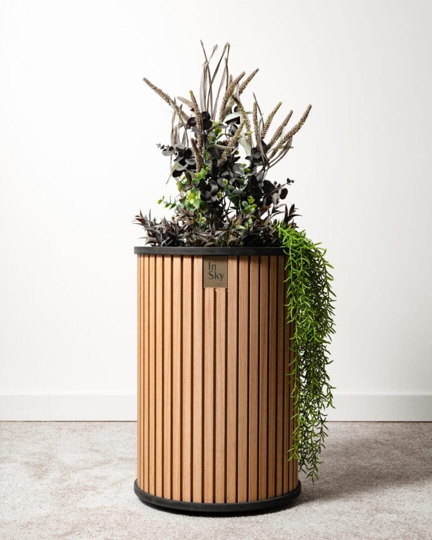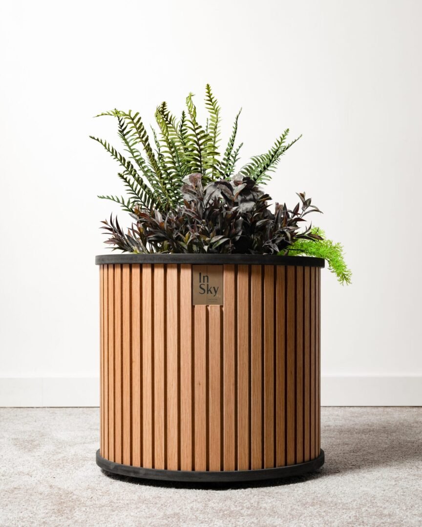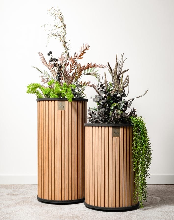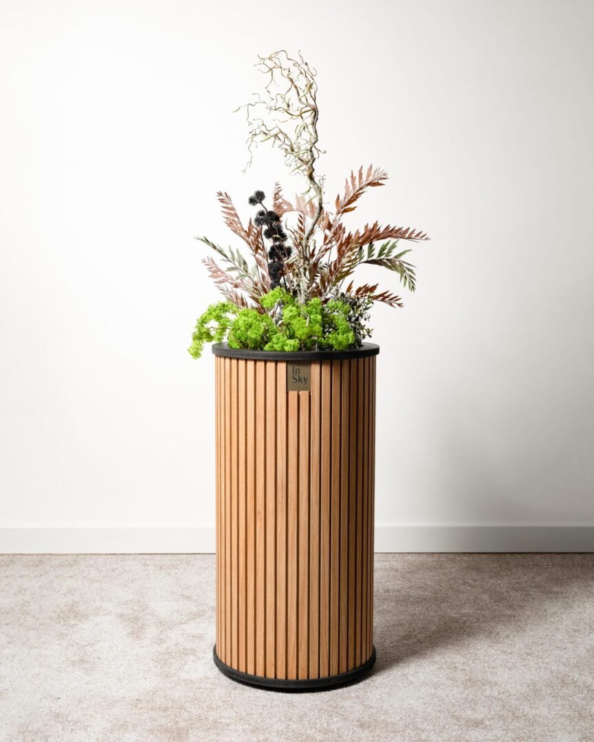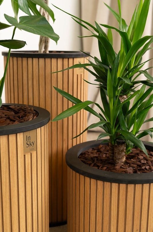Šviesūs ir elegantiški ąžuolo faneruotės vazonai, suteikia jaukumo ir lengvumo interjerui. Su paslėptais ratukais patogiam perstūmimui.