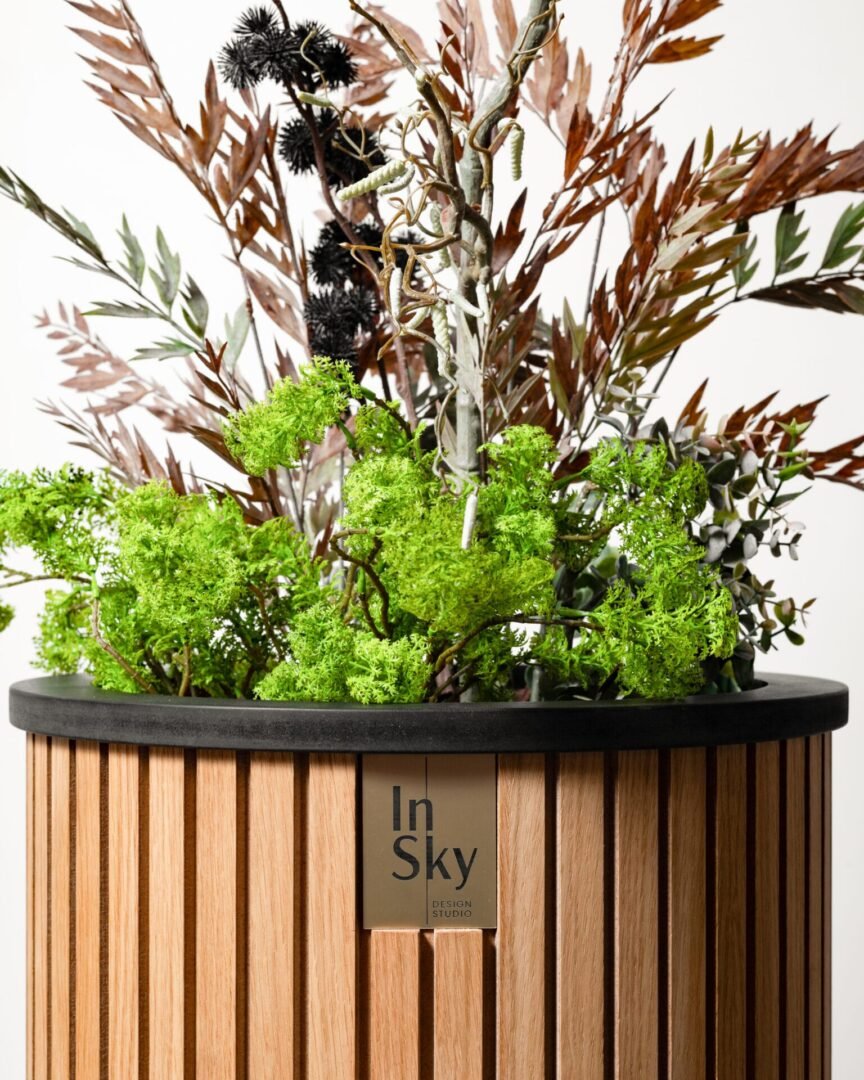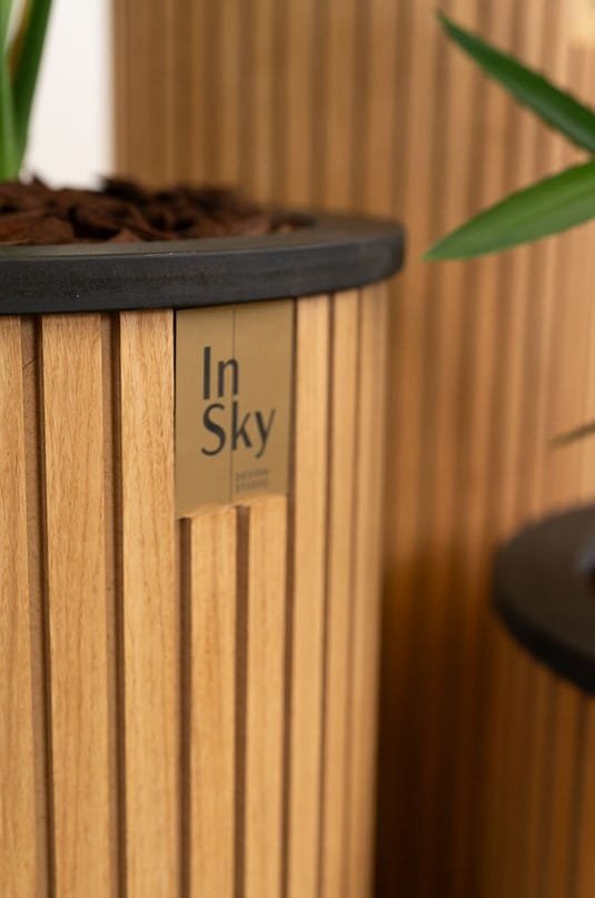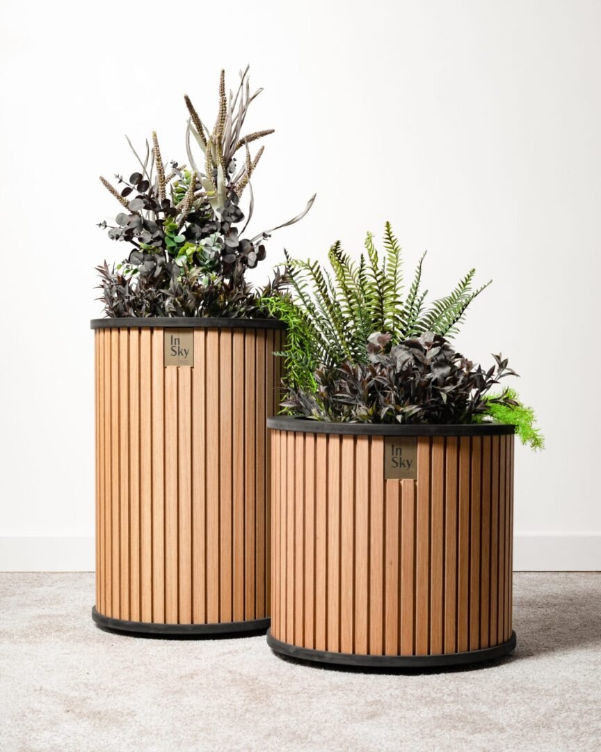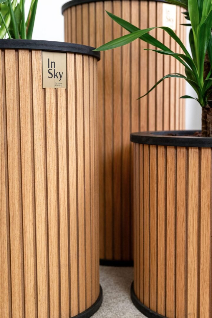 Šviesūs ir elegantiški ąžuolo faneruotės vazonai, suteikia jaukumo ir lengvumo interjerui. Su paslėptais ratukais patogiam perstūmimui.