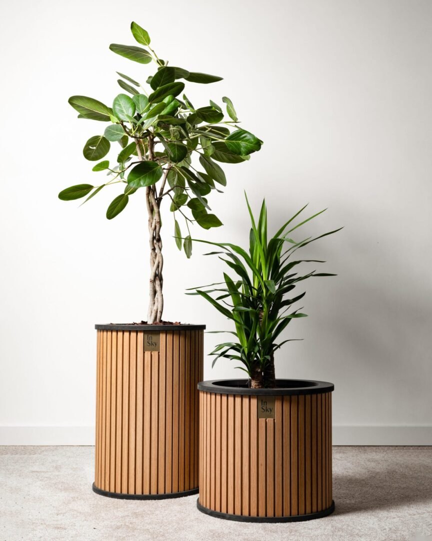 „HARMONY Maxi“ – išskirtinis medinis vazonas su paslėptais ratukais