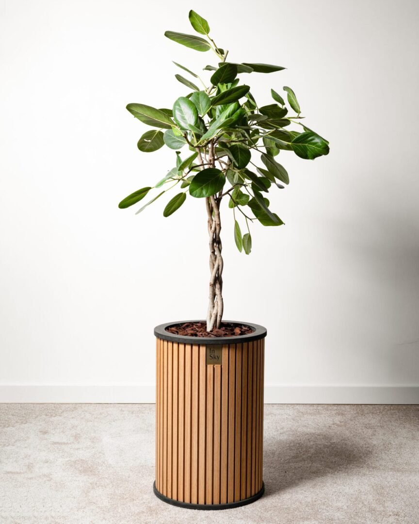 Šviesus ir elegantiškas ąžuolo faneruotės vazonas, suteikia jaukumo ir lengvumo interjerui. Su paslėptais ratukais patogiam perstūmimui.
