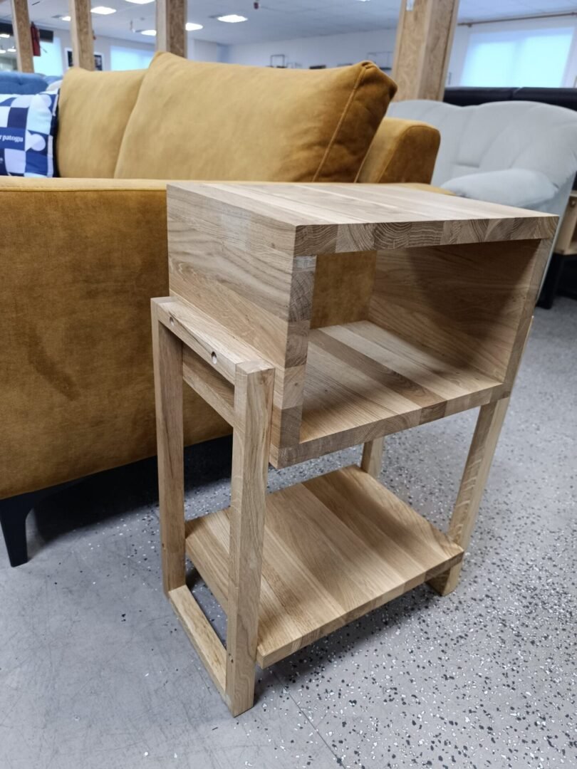 Šis rankų darbo ąžuolinis naktinis staliukas – aukštos kokybės baldas, sukurtas Lietuvoje. Elegantiškas dizainas ir natūrali mediena garantuoja šilumą bei stilių bet kokiam interjerui. Staliukas alyvuotas su pasirinkta spalva: juoda, ruda arba pilka, tačiau esant poreikiui galima užsakyti ir kitą atspalvį.