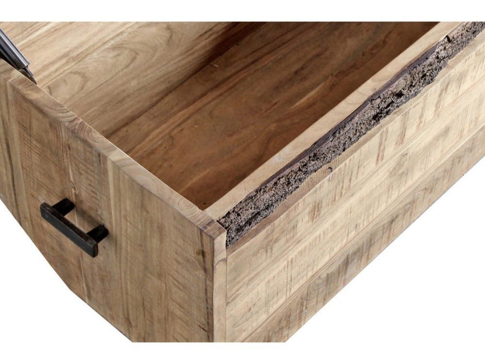 Ši skrynia yra papildyta metalinėmis rankenėlėmis, kurios prideda baldui pramoninio stiliaus akcentą ir užtikrina patogų naudojimą. Tvirtos rankenėlės yra ne tik patvarios, bet ir stilingos, todėl skrynia tampa išskirtiniu interjero elementu. Akacijos mediena yra žinoma dėl savo ilgaamžiškumo ir atsparumo, todėl ši skrynia ilgus metus išlaikys savo formą bei patrauklumą.